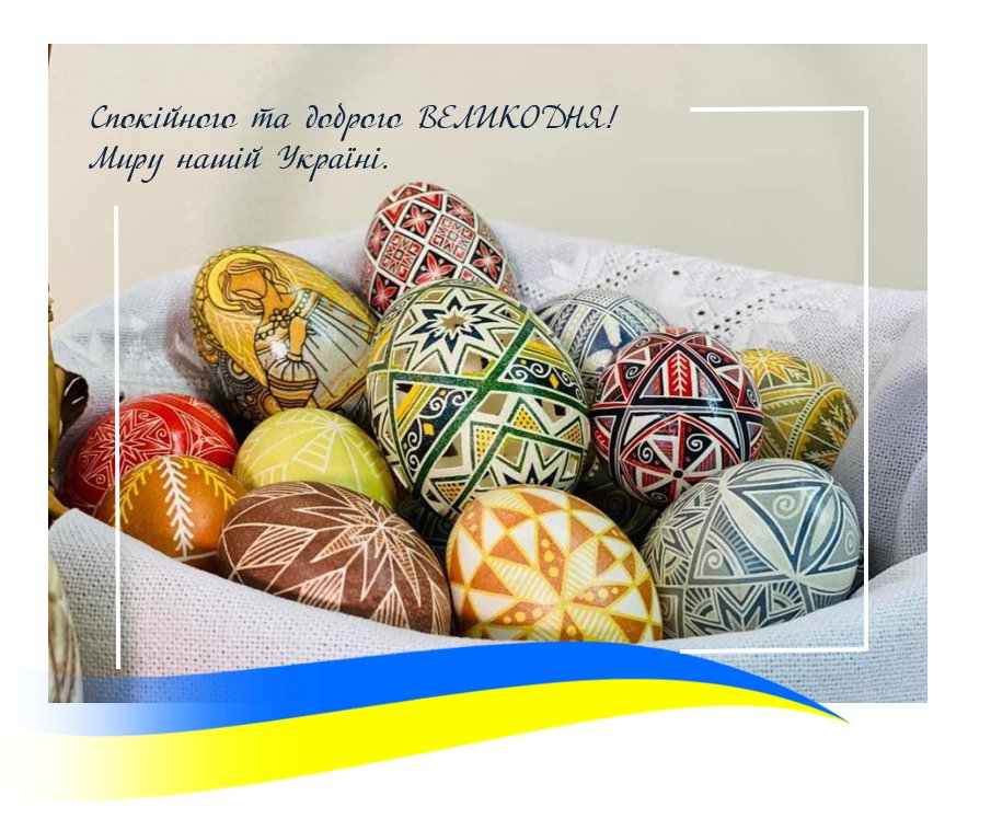 Нехай Великодній дух воз’єднає усіх рідних та близьких із тими, хто мужньо боронить нашу рідну Україну! Віримо в нашу Перемогу, пишаємося здобутками і мужністю Збройних Сил України та працюємо над втіленням нових якісних змін у освітній сфері.