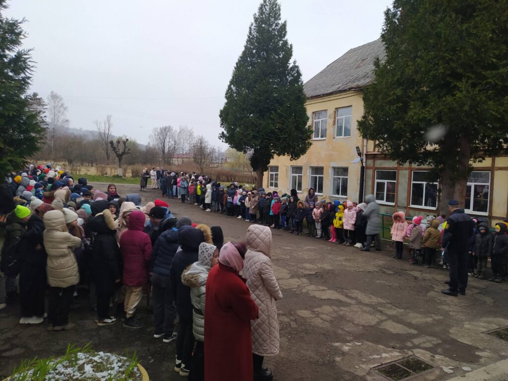евакуацією людей. У заході взяли участь учні, працівники закладу, а також представники ДСНС.