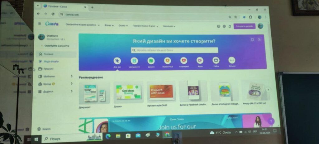 15 – 16 квітня, було проведено навчання для перших двох груп із 6 закладів загальної середньої освіти громади. Педагоги вчилися працювати з застосунком Canva для створення освітніх матеріалів: презентацій, відео, фотоколажів, плакатів, інфографіки, флаєрів тощо. Практично апробували використання штучного інтелекту при роботі з графічним дизайном. У групи увійшли понад 35 педагогів.