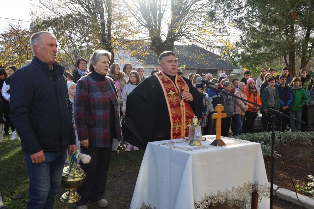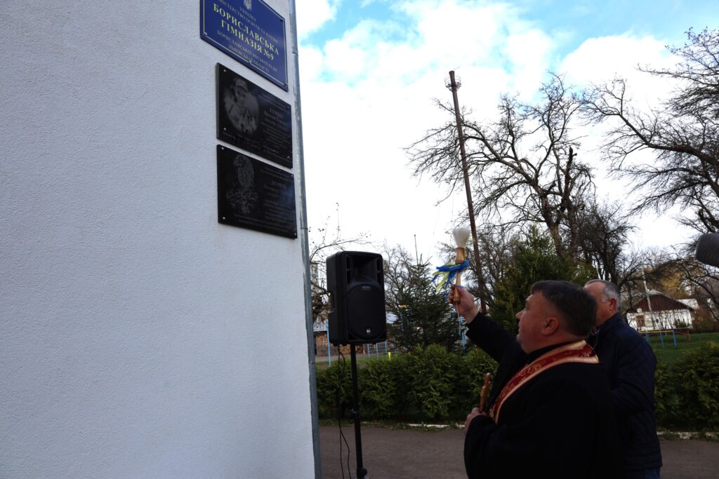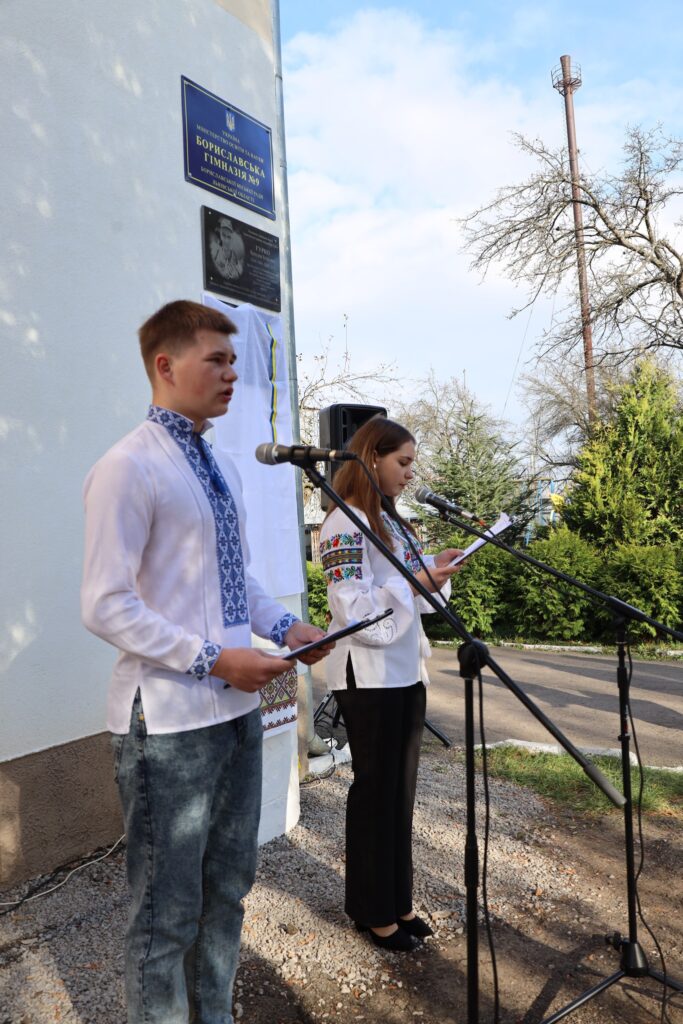 Урочисте відкриття меморіальної дошки розпочалося спільним виконанням Державного Гімну України. Після чого право відкрити пам’ятну таблицю було надано заступнику міського голови Мирону Цайтлеру та пані Наталії. Настоятель храму Покрови Пресвятої Богородиці отець Святослав Городецький провів поминальний молебень та освятив пам’ятний знак, який щодня бачитимуть учні гімназії і який нагадуватиме їм про ціну свободи.