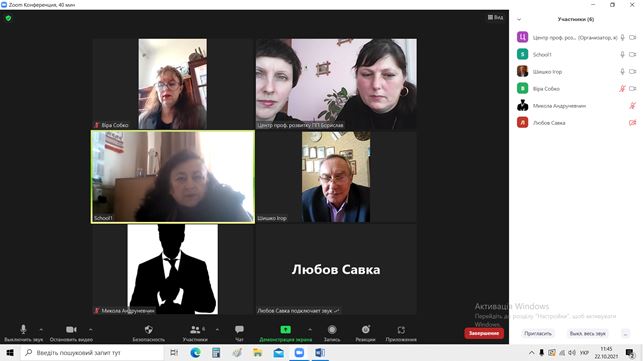 У п’ятницю, 22 жовтня 2021 року відбулася онлайн-нарада за участю начальника відділу освіти Елли Качмарчик, головного спеціаліста Майї Гоц, провідного спеціаліста Надії Мінів та директора КУ «Центр професійного розвитку педагогічних працівників» Ірини Татомир з керівниками закладів загальної середньої освіти Бориславської територіальної громади. Під час зустрічі було обговорено ряд питань, які стосувалися участі учнів ЗЗСО Бориславської територіальної громади у Всеукраїнських учнівських олімпіадах з навчальних предметів, навчання командами тренерів шкільних команд ЗЗСО, впровадження внутрішньої системи забезпечення якості освіти, участі педагогічних працівників у STEAM-проєктах. Особливу увагу було акцентовано на питаннях проходження курсової перепідготовки педагогічних працівників та участі ЗЗСО у процедурі інституційного аудиту.