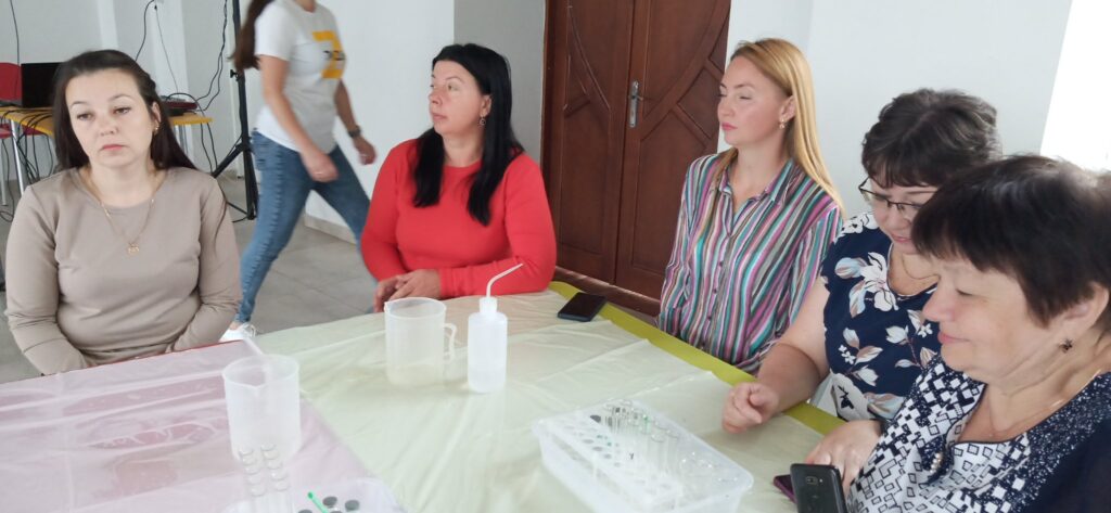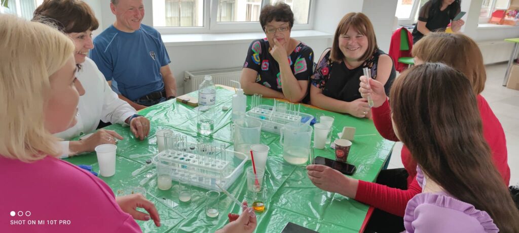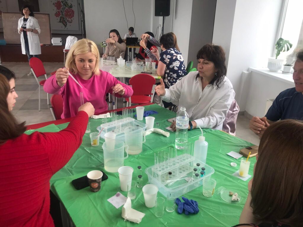 13 липня розпочала свою роботу творча педагогічна майстерня. Запрошені на зустріч освітяни мали змогу обмінятися думками щодо використання фізико-хімічних методів аналізу речовин у шкільній лабораторії. Працівники МАНУ, Ірина Бей та Олександр Толстов для вчителів провели майстеркласи щодо здійснення кислотного та ферментативного гідролізу крохмалю, дослідження якісного аналізу протеїнів і вуглеводів. За допомогою хімічних реакцій учасники заходу визначили особливості протеїну. Опанували фізико-хімічні методи аналізу поживних речовин. На основі використання ферменту аміалази опанували методи перетравлення вуглеводів у організмі.