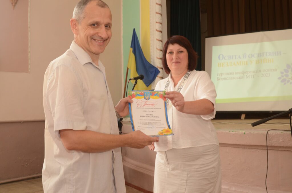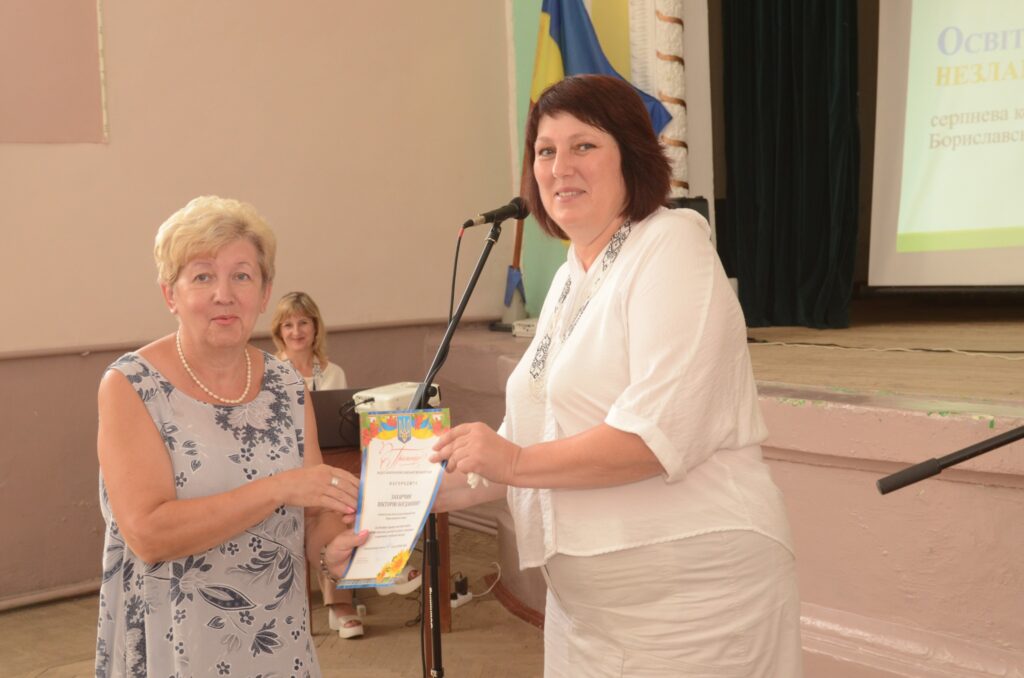 У рамках урочистості кращих освітян громади нагородили грамотами департаменту освіти і науки ЛОДА, відділу освіти Бориславської міської ради та подяками міського голови за високі досягнення та зразкові результати у педагогічній діяльності.