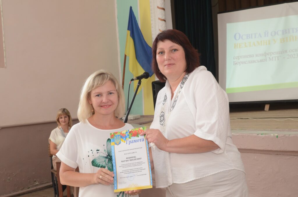 Вже традиційно перед початком нового навчального року освітяни Бориславської МТГ збираються на педагогічну конференцію, яка у цьому році пройшла 29 серпня 2023 року, під гаслом «Освіта й освітяни – незламні у війні».