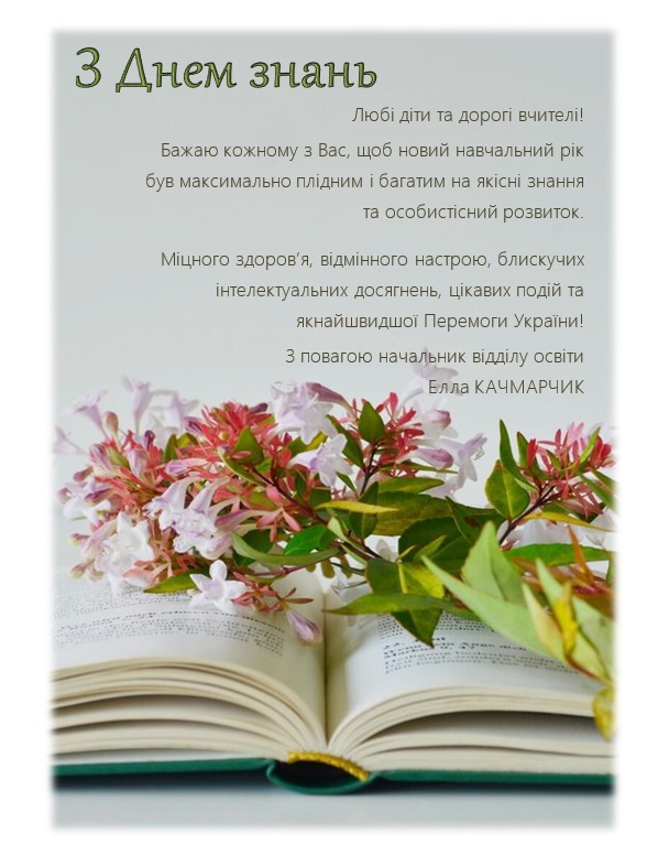 ВІТАННЯ НАЧАЛЬНИКА ВІДДІЛУ ОСВІТИ З ПОЧАТКОМ НОВОГО НАВЧАЛЬНОГО РОКУ
