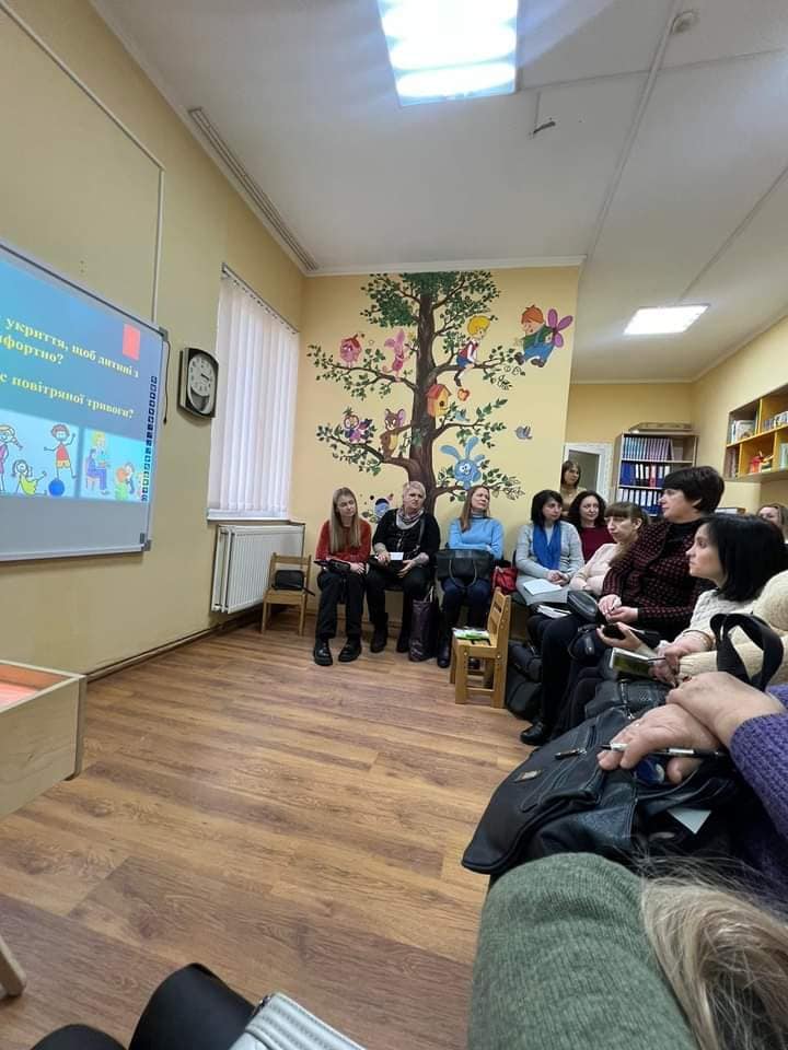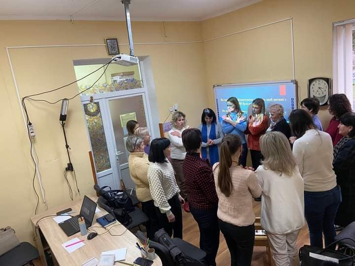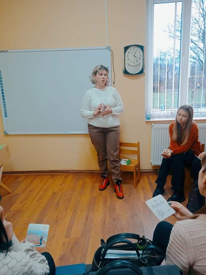 Психологом КУ «Центр професійного розвитку педагогічних працівників» Олесею ХАЛУС присутніх було ознайомлено з способами зняття напруги, підвищення стресостійкості та відновлення емоційного ресурсу. Запропоновано ряд вправ на дихання, зняття сильного емоційного та фізичного напруження. Вчилися використовувати метафоричні картки для допомоги дітям впоратися з їх емоціями, звичками та проблемами.