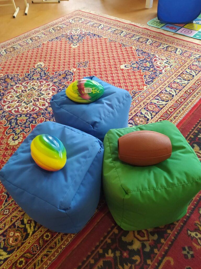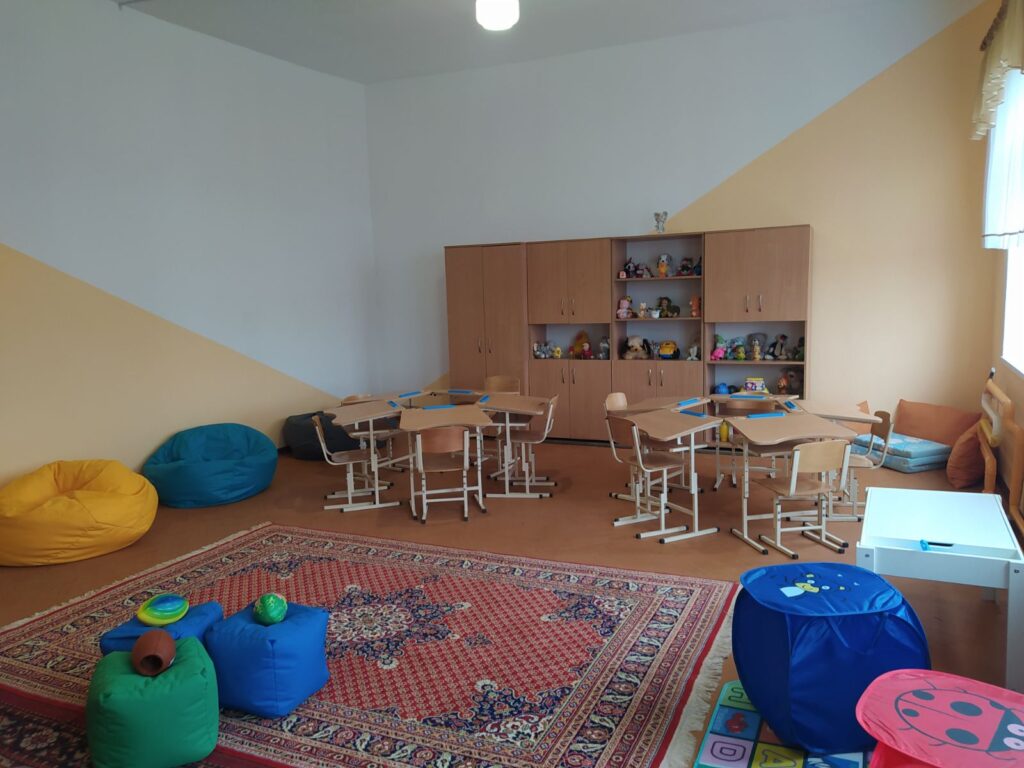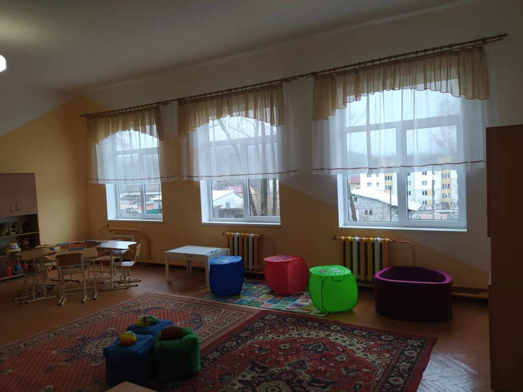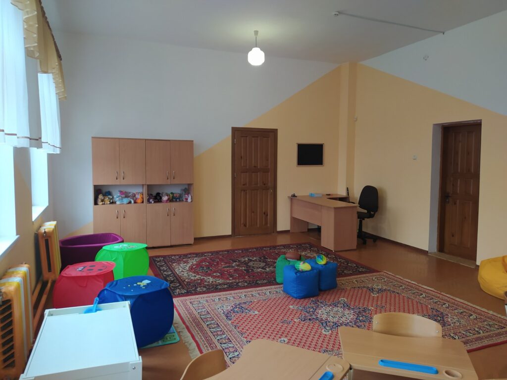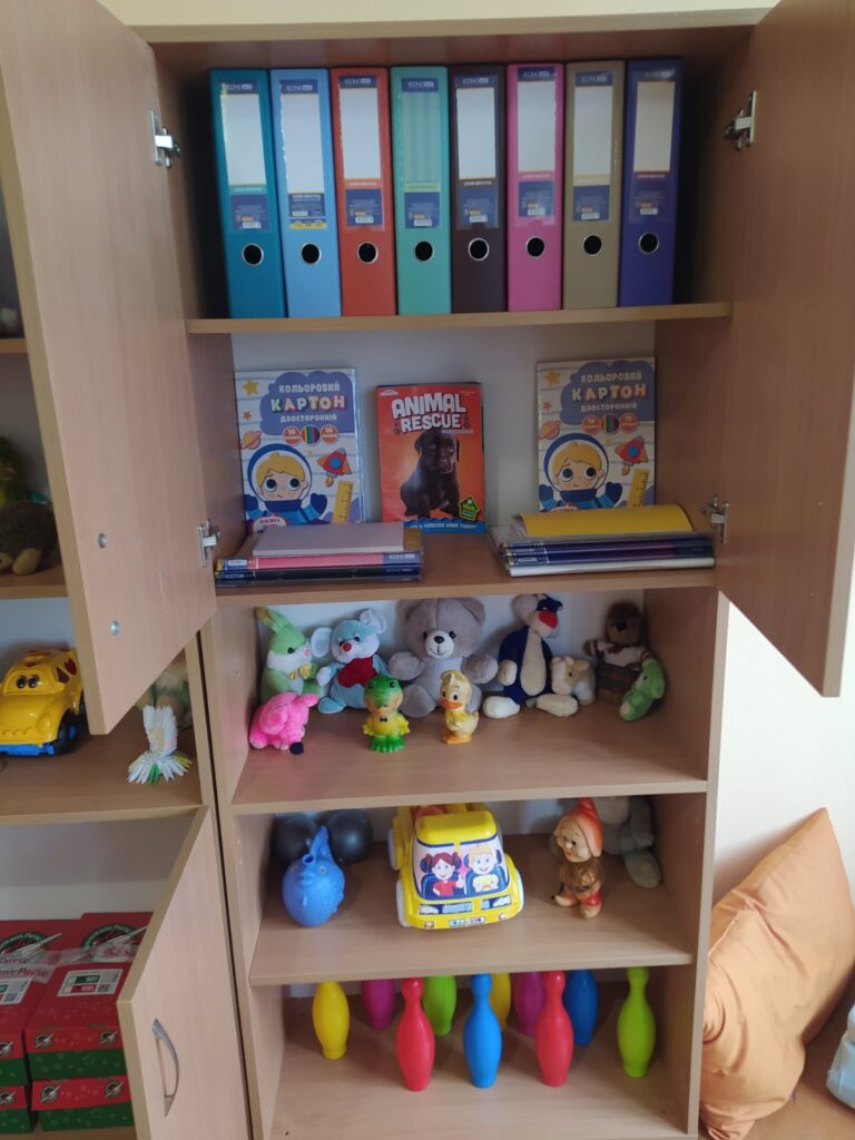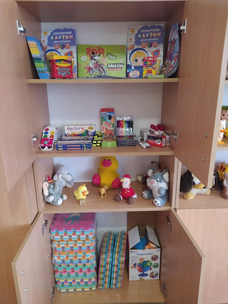 У кімнаті є все, що потрібно для цікавого та корисного дозвілля: яскраві іграшки, настільні ігри, м’які килимки та зручні пуфики, на яких можна відпочити та почитати книгу.