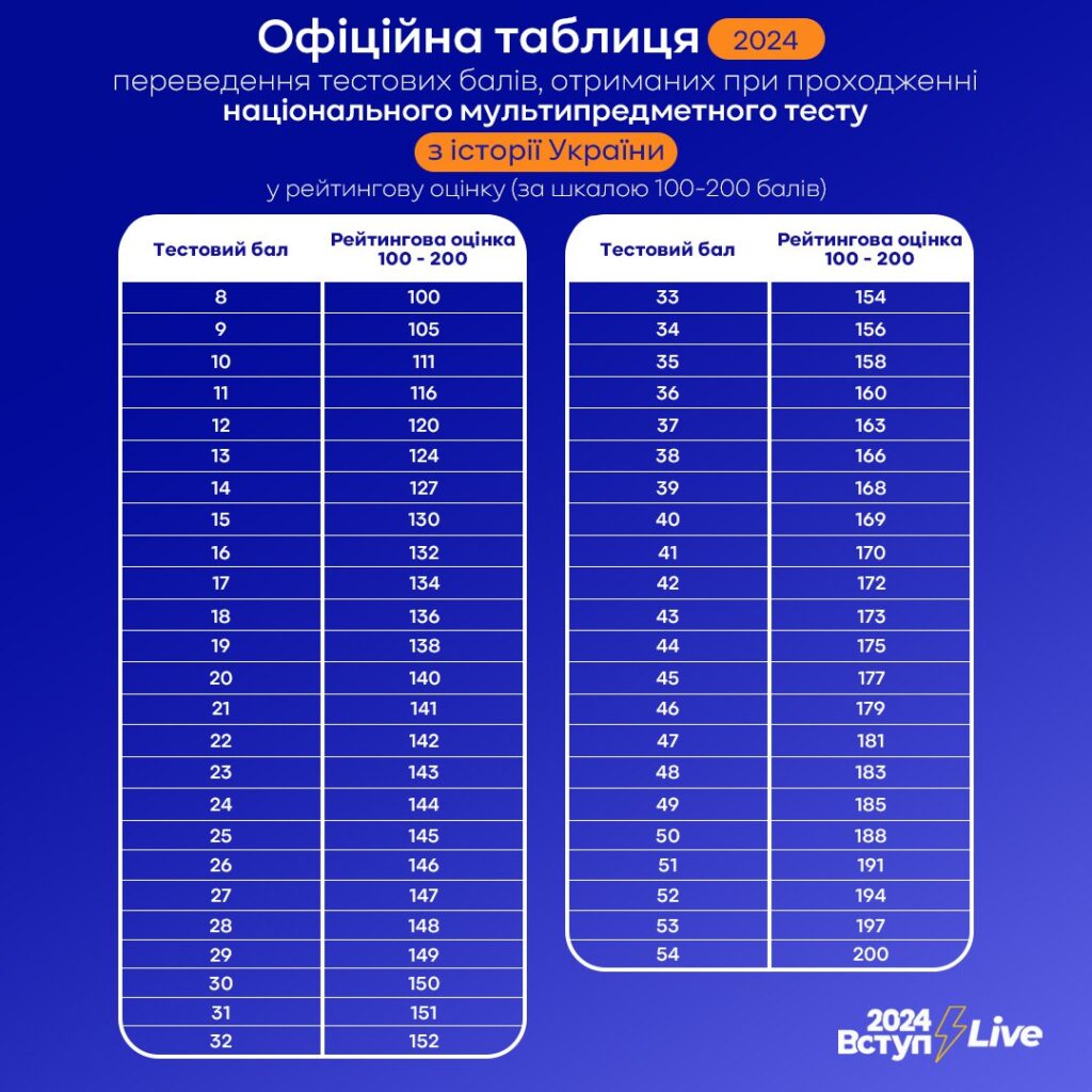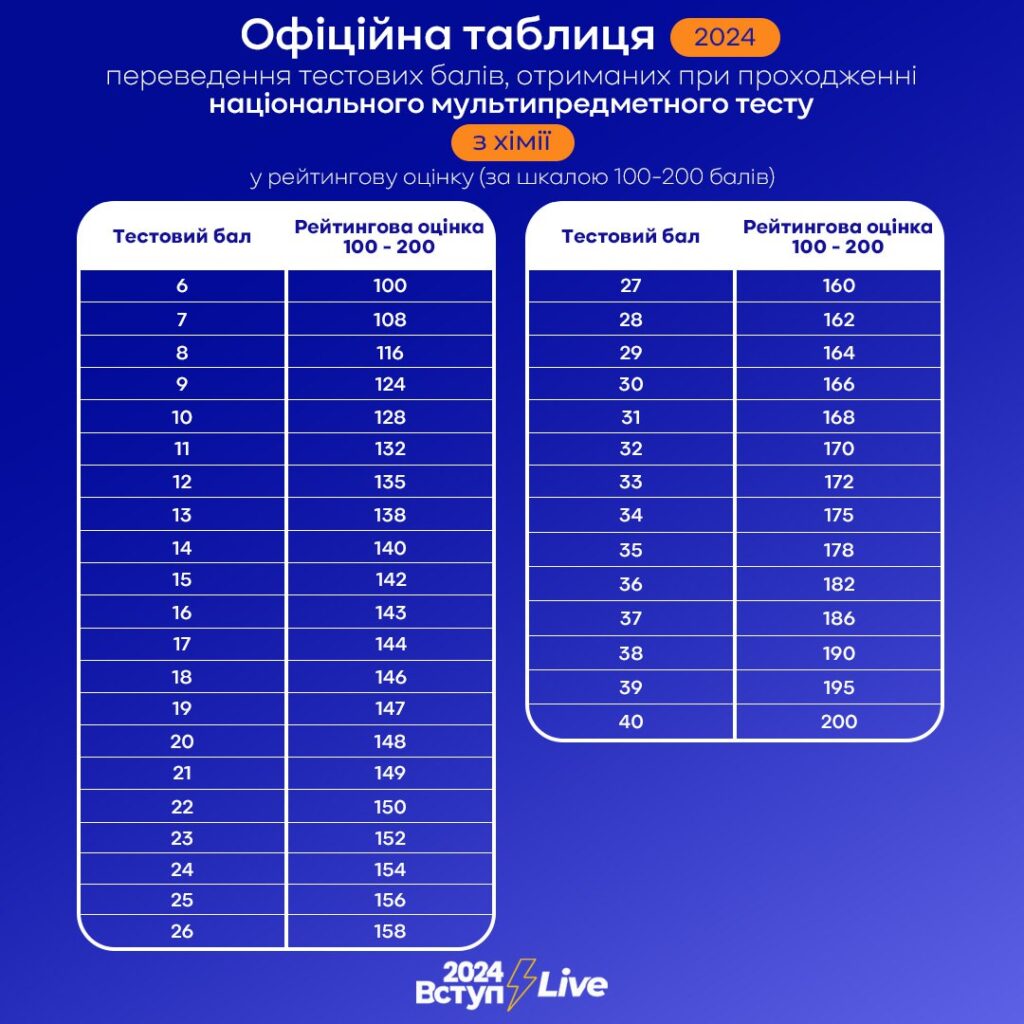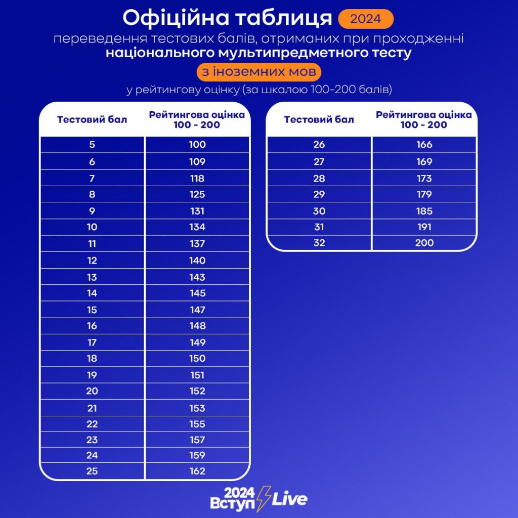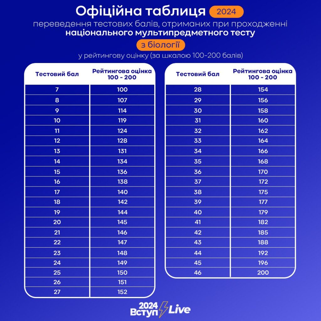 ОФІЦІЙНІ ТАБЛИЦІ 2024 ПЕРЕВЕДЕННЯ ТЕСТОВИХ БАЛІВ, ОТРИМАНИХ ПРИ ПРОХОДЖЕННІ НМТ