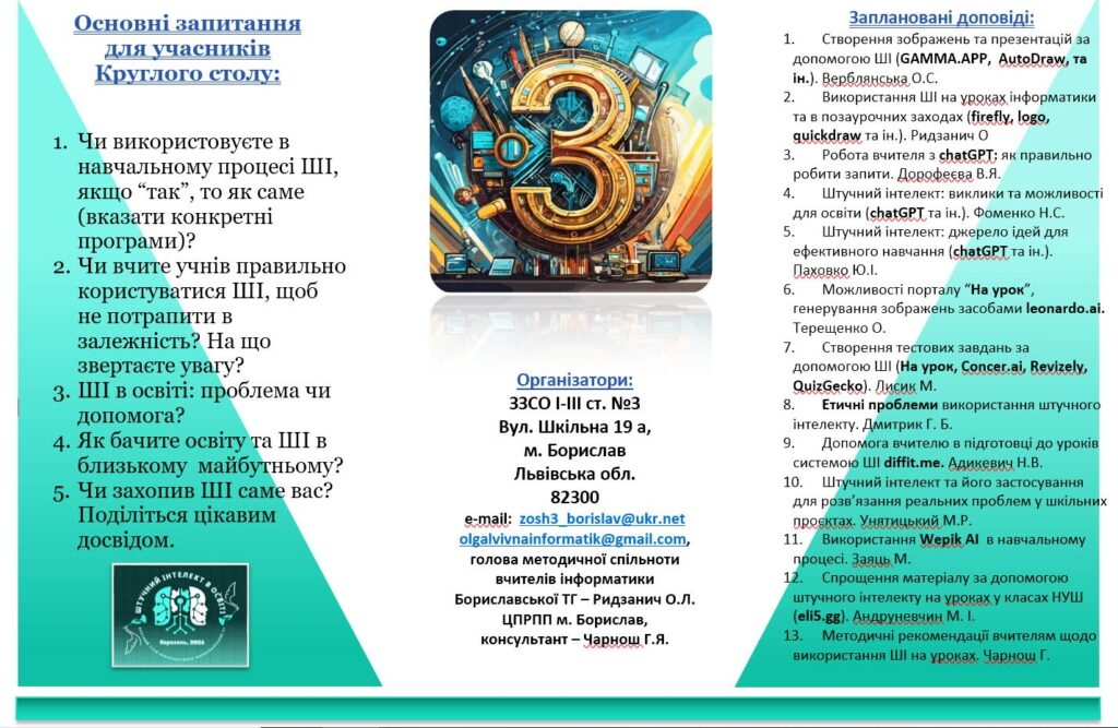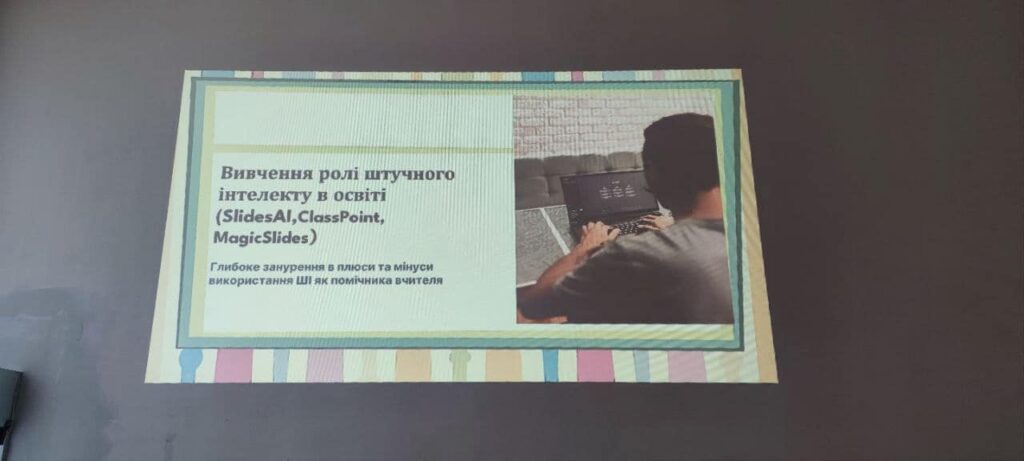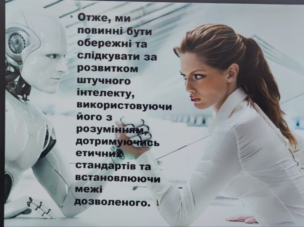 Педагоги ділилися своїм досвідом використання нейромеж в освітньому процесі, розглянули його переваги та недоліки, демонстрували інструменти, які можна використовувати на уроках. Особлива увага була приділена етичним проблемам застосування штучного інтелекту, представленню програм за допомогою, яких можна спростити матеріал у класах НУШ.
