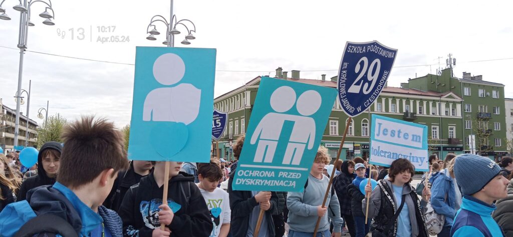 5 квітня 2024 року, пішою ходою на центральну площу м. Ченстохова завершився тиждень приурочений Всесвітньому дню поширенню інформації про аутизм. Тим самим, у знак солідарності, представники громадськості, освітянської спільноти та здобувачі освіти з блакитними кульками, стрічками та пазлами мали можливість підтримати людей з аутизмом та пов’язаними з ним розладами. Пізнавальними стали акції «Ми – просто трохи інші» та «Запались голубим».