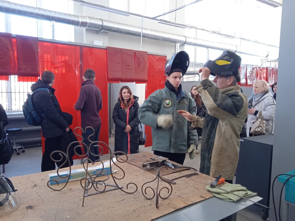виконували зварювання деталей у нижньому положенні металічним електродом та ознайомилися з найсучаснішим зварювальним обладнанням НПЦ;