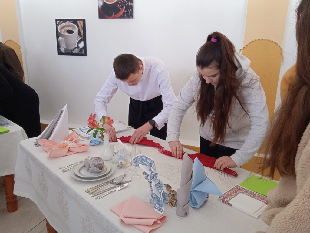 складали серветки для декоративного оформлення столу і ознайомилися з правилами сервірування;