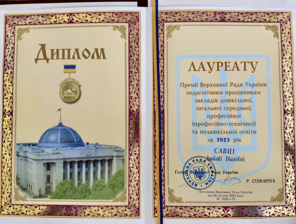 28 травня у Києві відбувся урочистий захід з вручення дипломів лауреатам Премії Верховної Ради України педагогічним працівникам та стипендіатам Верховної Ради України – молодим ученим-докторам наук за участю Голови Верховної Ради України Руслана Стефанчука та Голови Комітету з питань освіти, науки та інновацій Сергія Бабака, народних депутатів. Диплом лауреата отримала директор Бориславського ліцею Любов Савка.