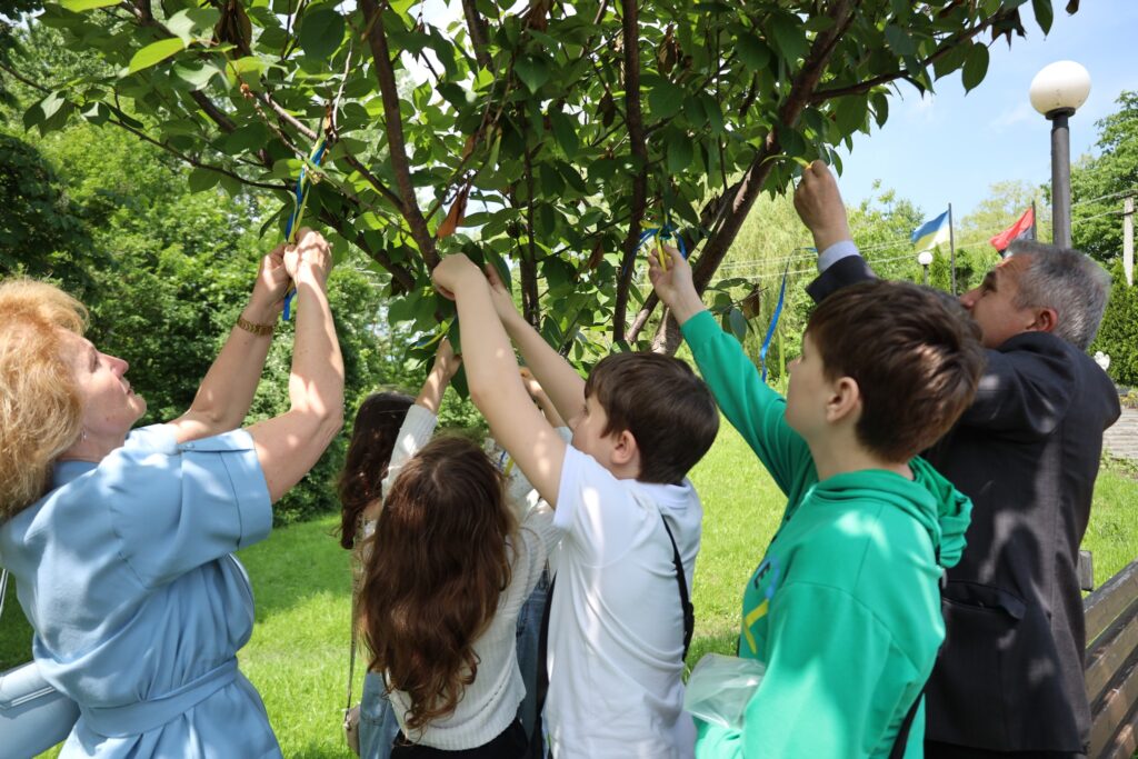 На завершення заходу мешканці громади повісили дзвіночки на дерева. Це жест глибокої скорботи, символ пам’яті про кожне втрачене дитяче життя і водночас тихий заклик до миру.