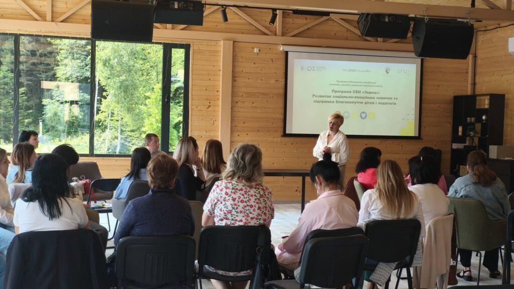 Під час чергових навчань за програмою «ЗЕРНА СЕН» з тренером Лесею Колток говорили не лише про навчання дітей, а й підтримку та розвиток педагогів. Учасники зустрічі апробували активності, які можна легко адаптувати й інтегрувати в роботі з учнями та для підтримки благополуччя педагогів, обговорювали застосування методик і їх вплив на розвиток емоційного інтелекту дітей.